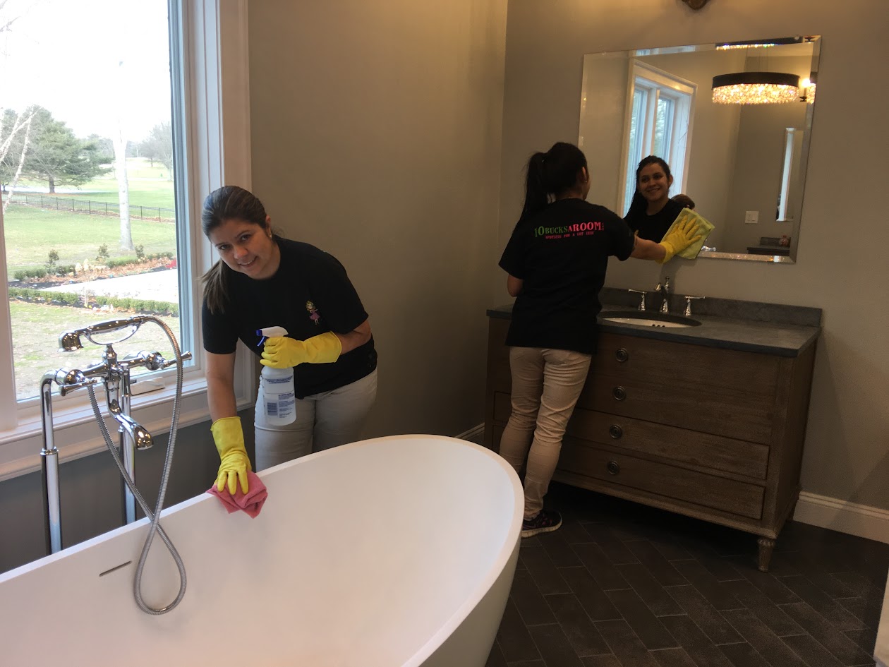 At 10Bucksaroom, our bathroom cleaning package covers all the essential tasks to leave your bathroom fresh and sparkling clean. Our team will wash the shower and shower walls, We’ll also clean the toilet, ensuring it is sanitized and free from stains. The sink will be washed leaving it shiny and spotless. Mirrors will be cleaned and streak-free, providing a clear reflection. We’ll also wipe down the baseboards, removing any dust or dirt. Finally, we’ll sweep and mop the floors, leaving them clean and free from debris. With our bathroom cleaning service, you can enjoy a clean and hygienic space to start your day or unwind after a long day.